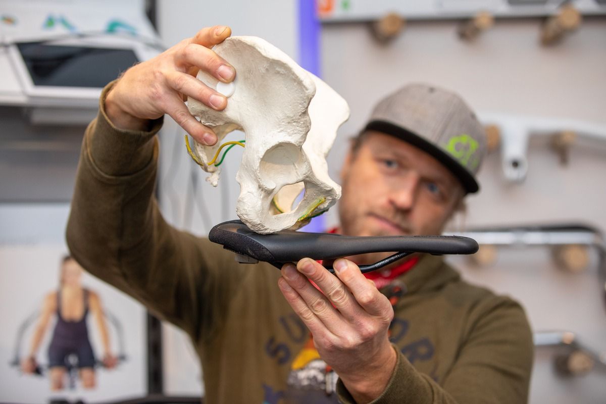 Auf Wunsch führen wir komplexe Ergonomietests durch. Dabei messen wir unter anderem euren Sitzknochenabstand. Werte wie diese helfen uns dabei, Sattel, Lenker und Griffe perfekt einzustellen und so die optimale Sitzposition für euch zu finden. Damit ist es möglich, Beschwerden beim Fahrradfahren entscheidend zu reduzieren.